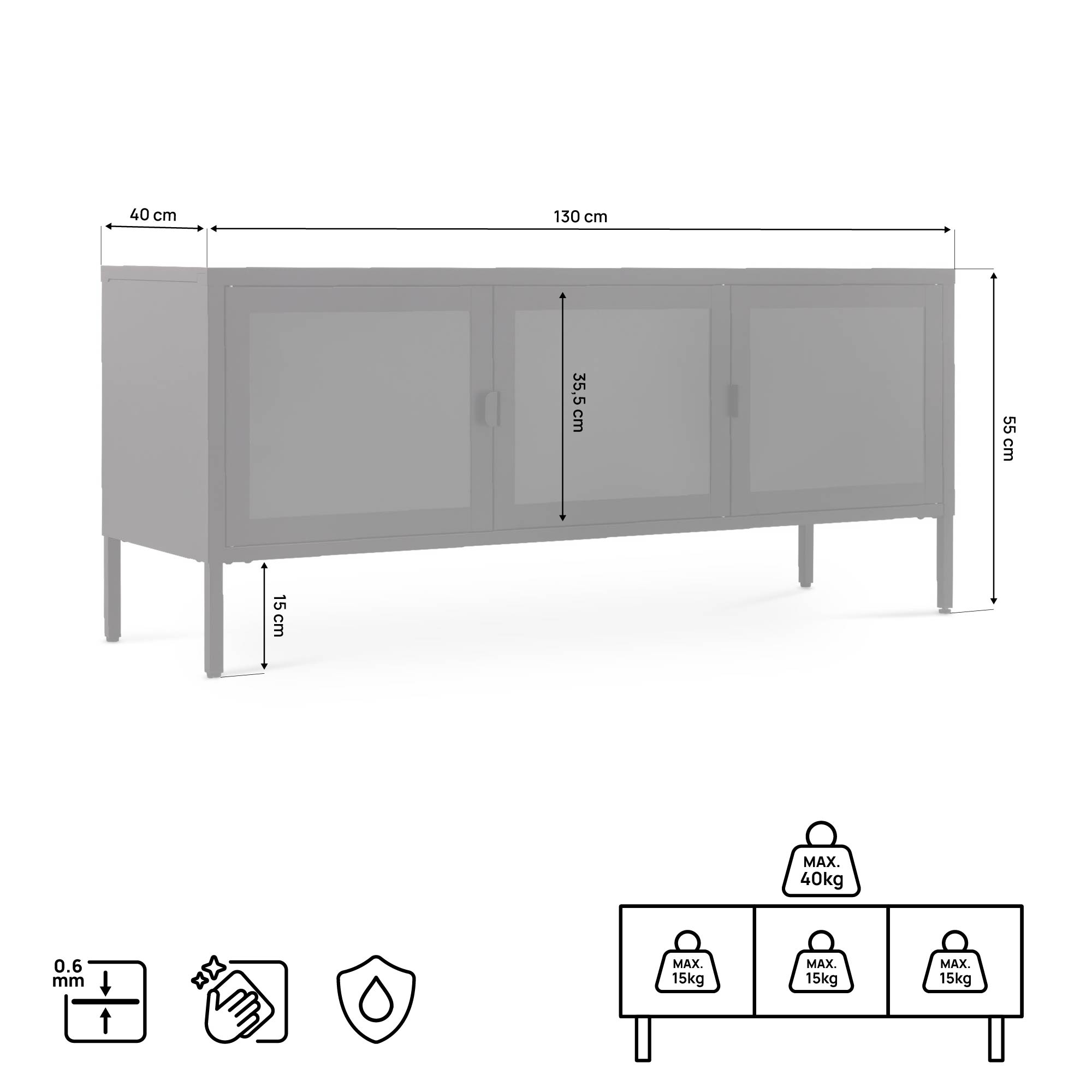 Metal TV Stand 130cm 3 Doors, Black and Tempered Glass EZRA 2 3 4 5 6 7 8 9 10 11 12 13