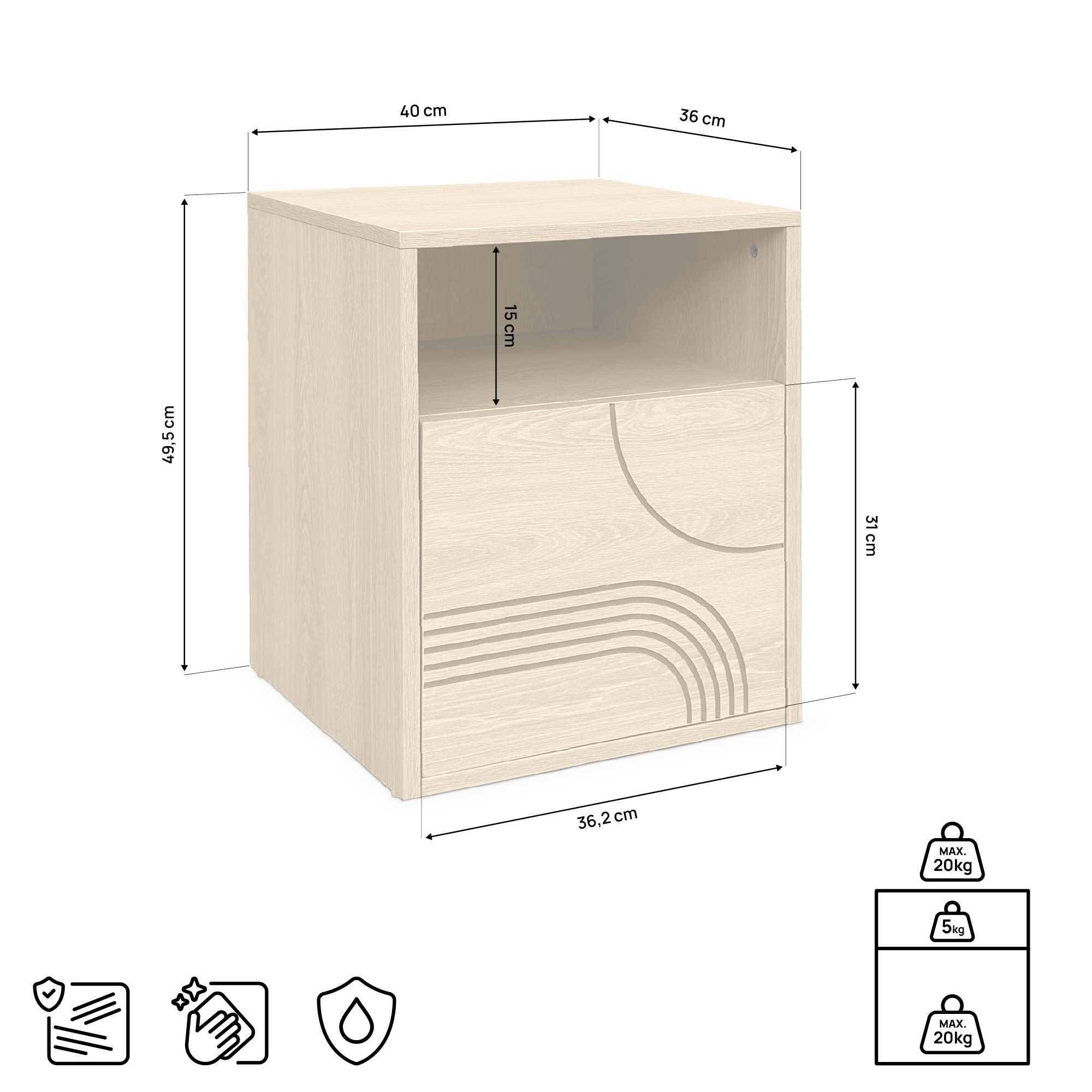 Bring organization and charm to your bedroom with this bedside table. Its clean lines and practical storage space keep your essentials within easy reach, while adding a decorative touch to your interior.